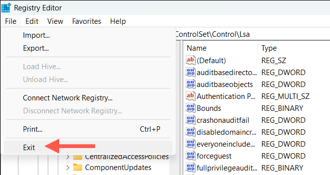 - Select File > Exit to exit the Registry Editor.