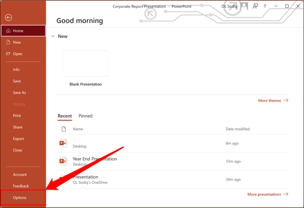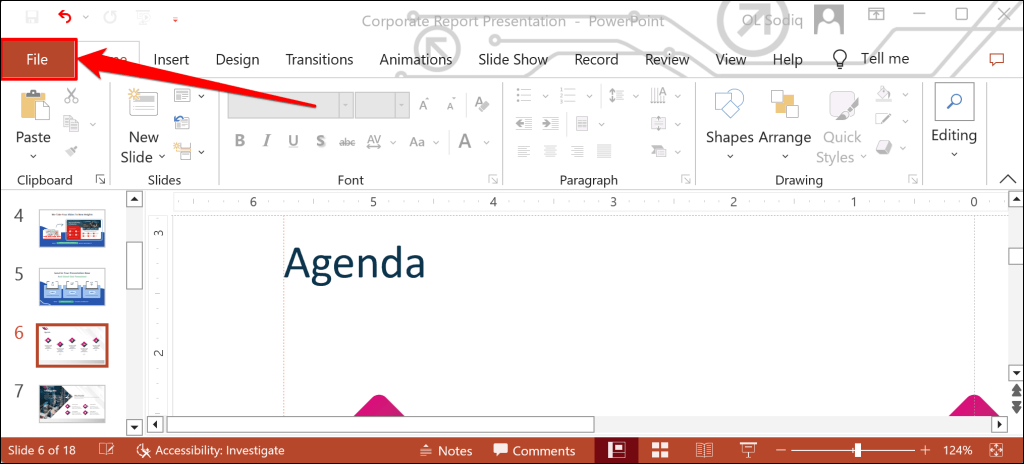 PowerPoint also allows you to use a black screen to indicate the end of a slide show or presentation. If you don’t have time to design a closing slide, configure PowerPoint to display a black screen after the last slide in your slide show. Open the PowerPoint file and follow the steps below.