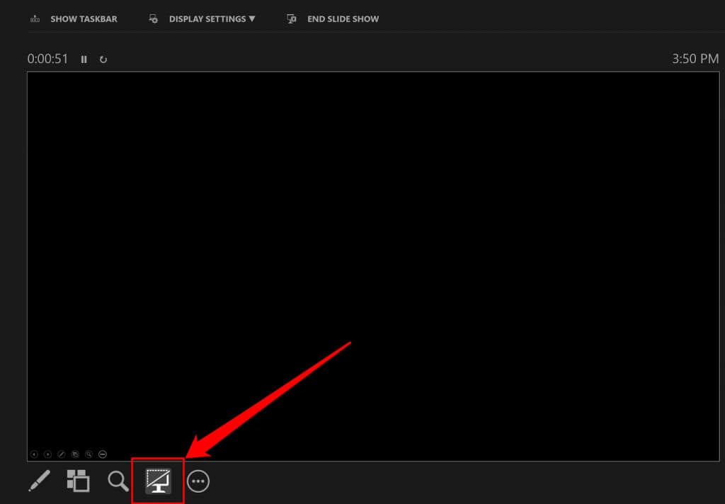 That’ll blank the screen with a black slide. Press any key on your keyboard or tap the Black/White Screen icon again to dismiss the black screen.