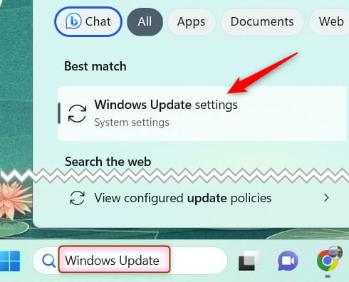 - * In the Windows Search bar, type Windows Update and then select Windows Update settings from the search results.