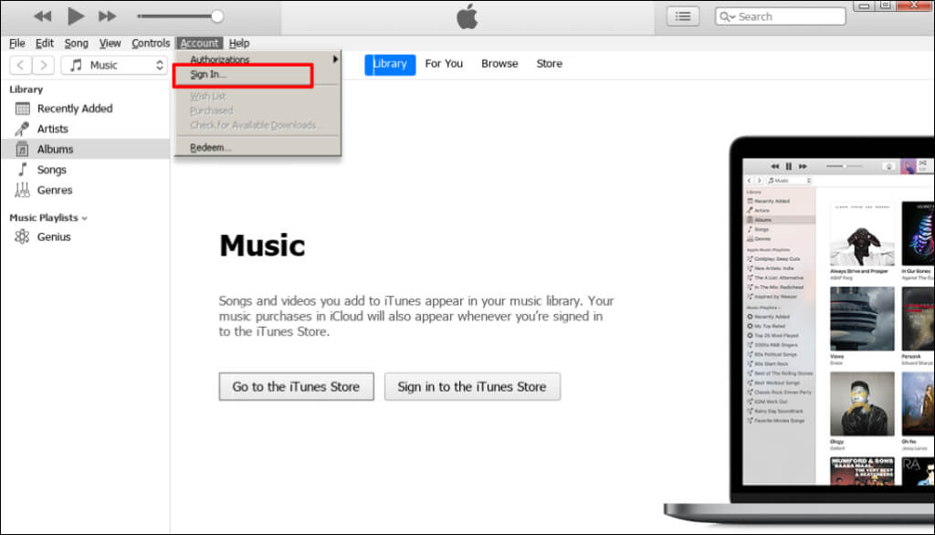 - Select Account on the menu bar and choose Sign In to link the app to your Apple ID account.