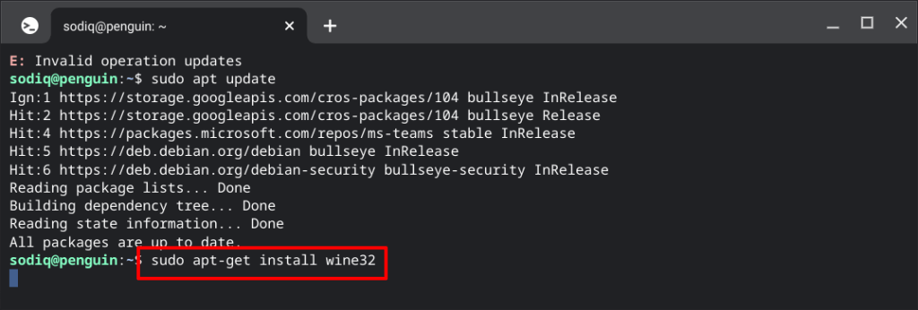 - Afterward, run the **sudo apt-get install wine32 **command to install the 32-bit Wine package.