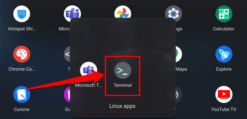 - Open the Linux Terminal app on your Chromebook.