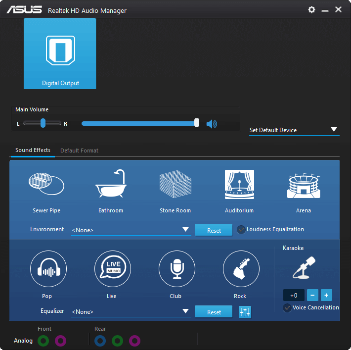 With Realtek Audio Console, you can change volume parameters and audio device settings for each peripheral that you have connected. You can add playback sound effects and use advanced features like headphone virtualization and equalizers.
