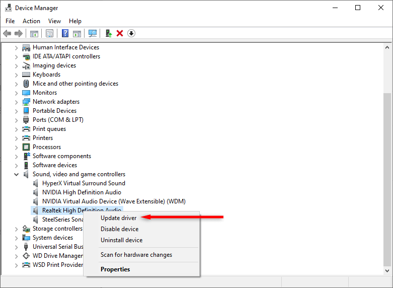 - Scroll down and expand Sound, video and game controllers. * Right-click Realtek Audio and select Update driver.