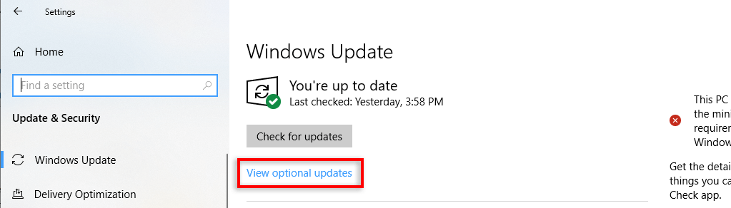 - Select Windows Update, then View optional updates.