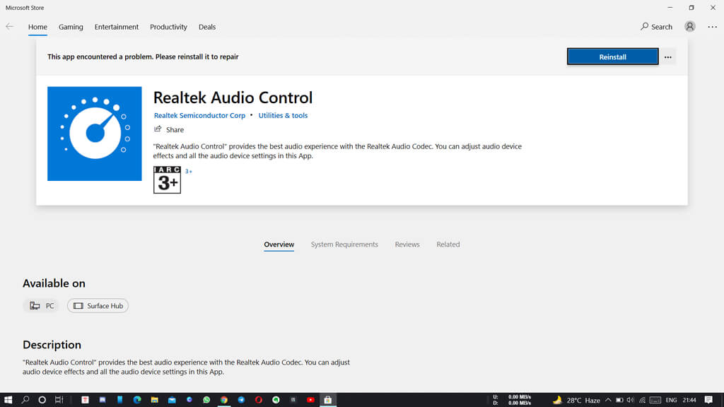 - * Open the Realtek Audio Control download page from the Microsoft Store website (it isn’t possible to find it directly from the Microsoft Store app).