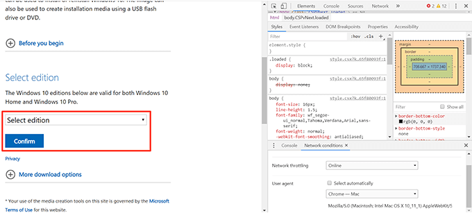 - Keep the Developer tools section open and head over to the Windows 10 ISO download page.