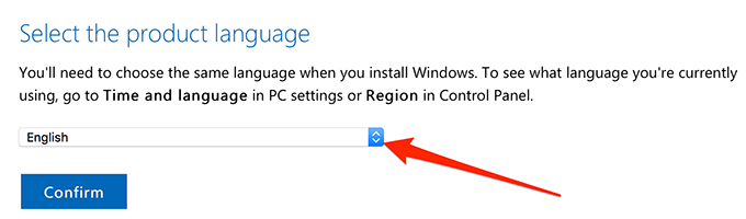 - From the Select edition dropdown on your screen, select Windows 10 and then click on the Confirm button beneath it.