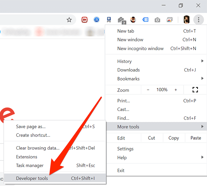 - Click on the three-dots at the top-right corner, select More tools, and click on Developer tools.