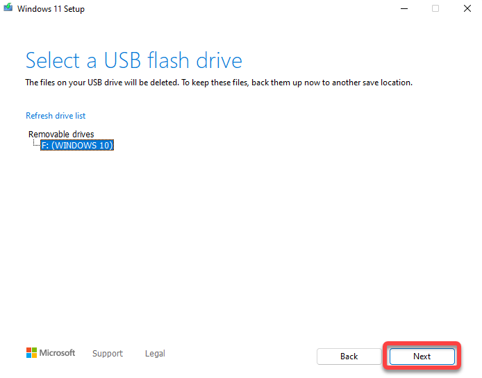 - If you choose the USB flash drive option, you’ll need to select the USB device you want to use on the next screen.