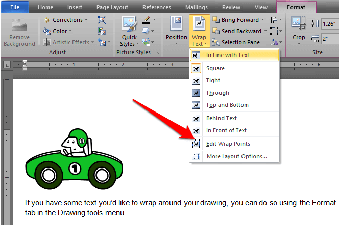- If your drawing has an irregular shape, you can wrap text around it by going to **Shape Format> Arrange > Wrap Text** and select **Edit Wrap Points**.