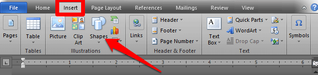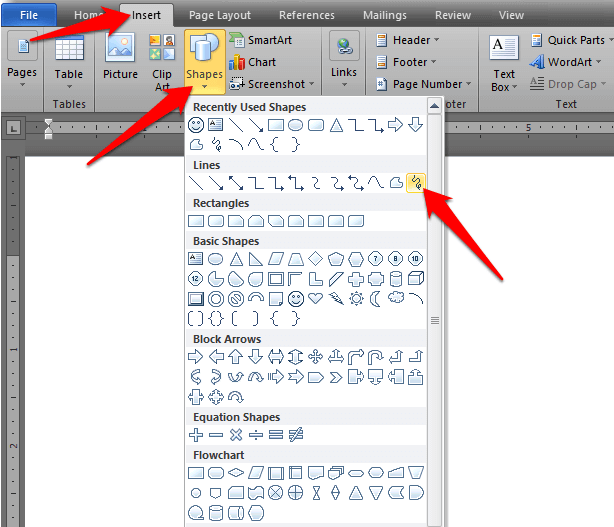 - * To draw basic lines and shapes, open your Word document. Select Insert > Shapes from the toolbar.