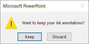 You’ll see a pop-up message asking if you’d like to keep your ink annotations. Choose Keep to hold onto them or Discard to remove them.