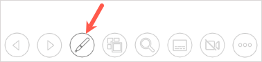 - When you land on a slide where you want to draw or highlight, select the Pen icon in the toolbar on the lower left.