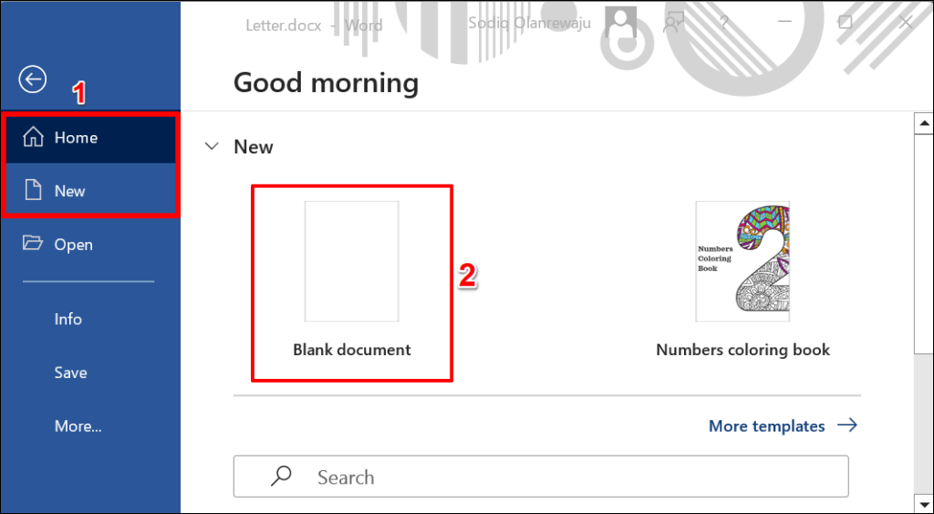 - If you want to duplicate the page to a new document, select Home or New on the sidebar and select Blank document.