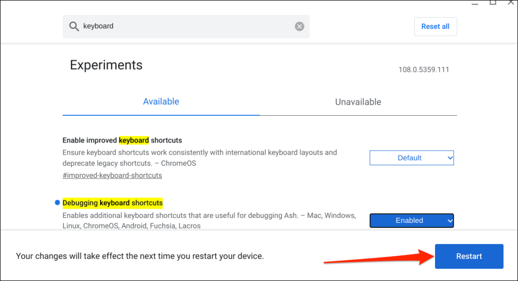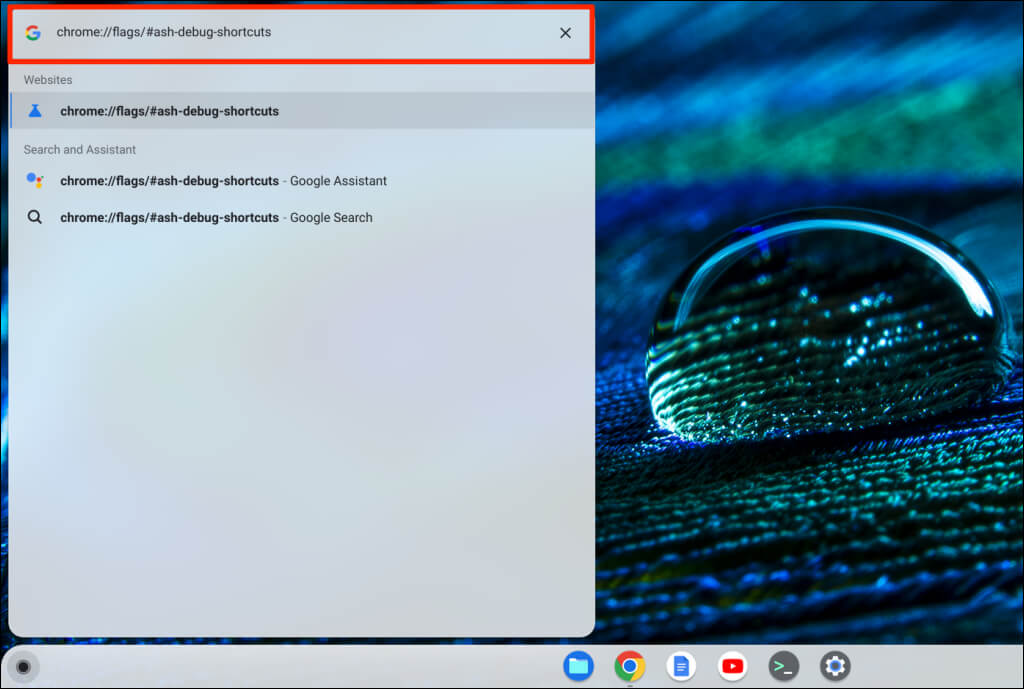 - Type or paste chrome://flags/#ash-debug-shortcuts in the search bar and press Enter.