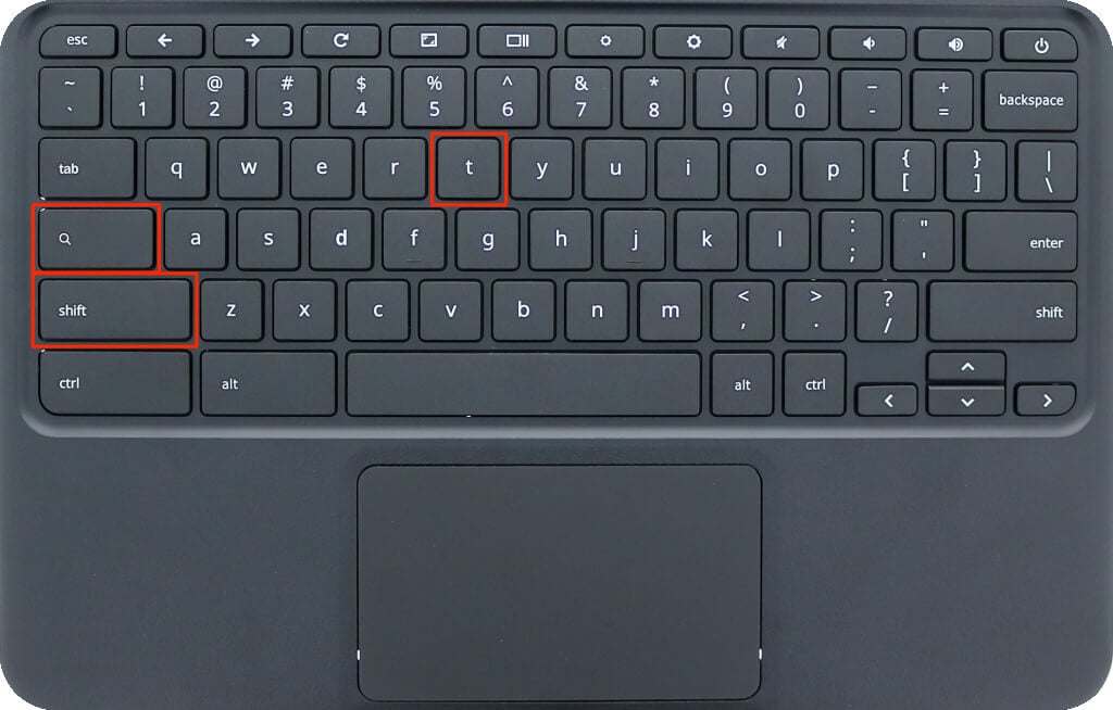 Press Search + Shift + T on your keyboard to turn your Chromebook’s touchpad back on.