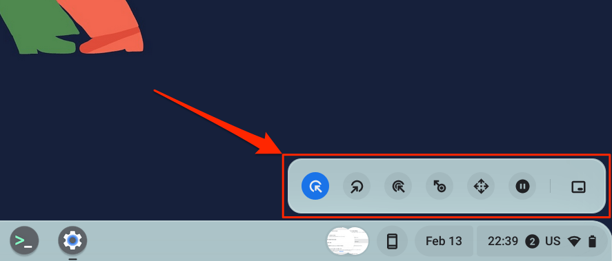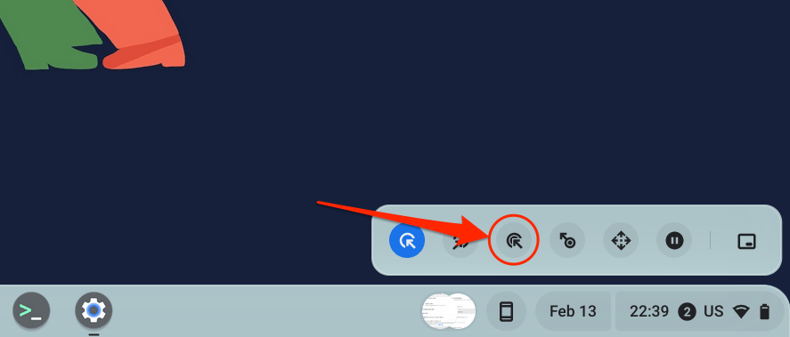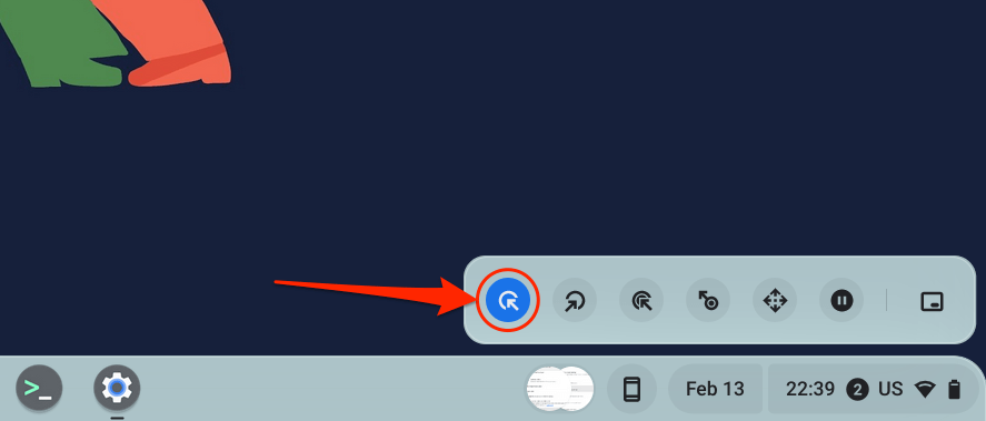 A floating auto-clicker menu appears in the bottom-left corner of your Chromebook’s screen when you turn on “Automatic clicks.”