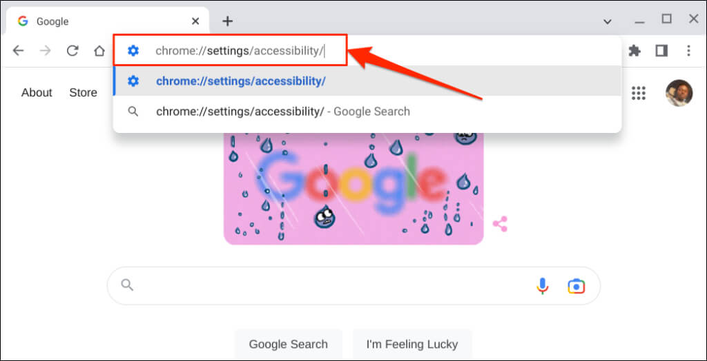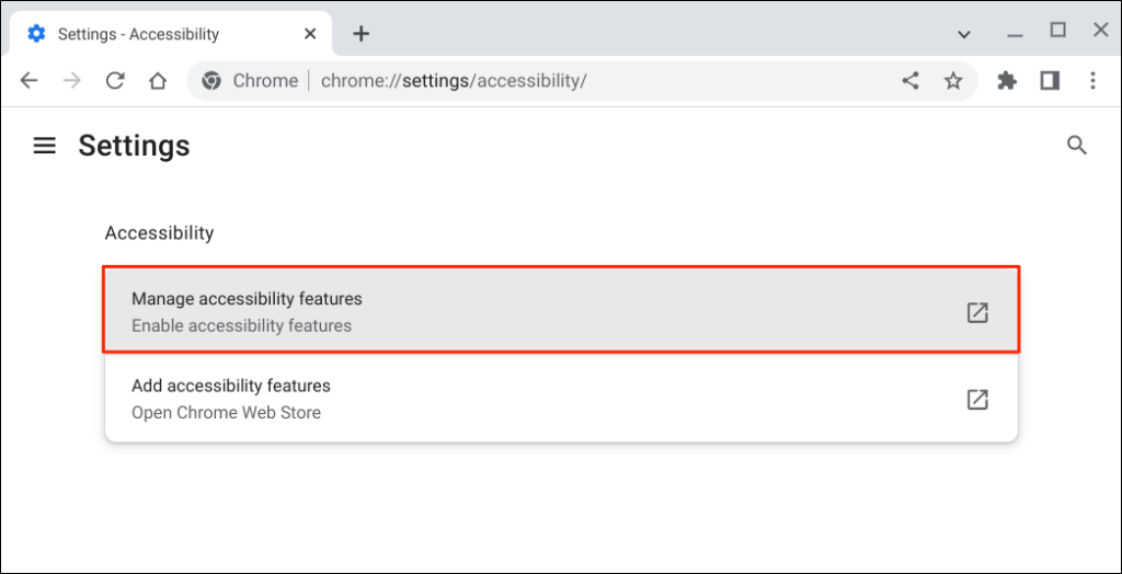 - Open the Google Chrome browser, type or paste chrome://settings/accessibility/ in the address bar, and press Enter.