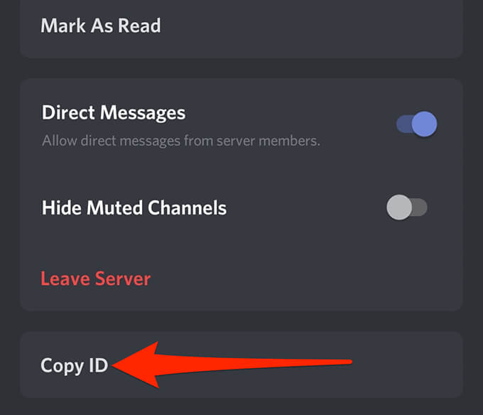 - Tap and hold a channel and select Copy ID to copy that channel’s ID.