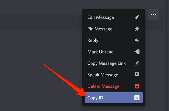 - Hover your mouse over your message, select the three-dots menu next to the message, and choose Copy ID.
