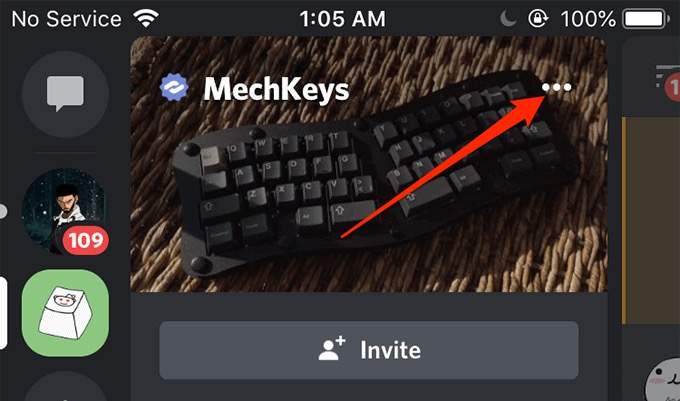 - On the server screen, tap the three-dots menu at the top-right corner.