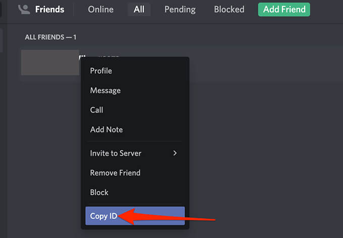- If the user is your friend, select **Friends**, right-click the user, and choose **Copy ID**.