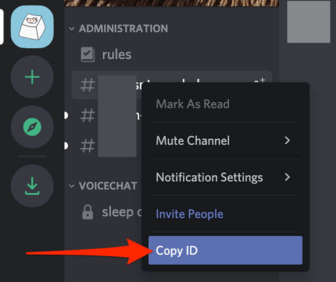 - Right-click the channel under **Administration **on the left and select Copy ID.