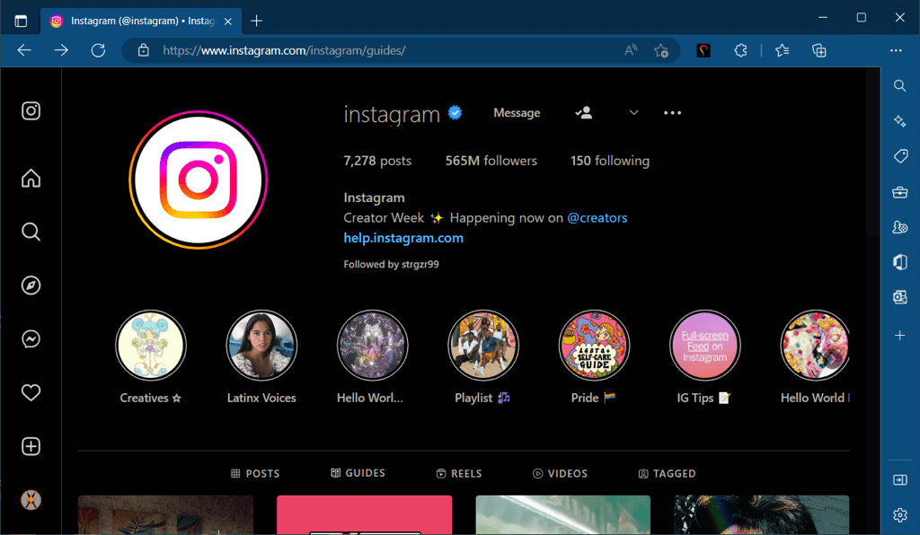 If you’re a fan of add-ons for enhancing your browser’s features, you can use one specifically for dark mode on Instagram in Microsoft Edge.