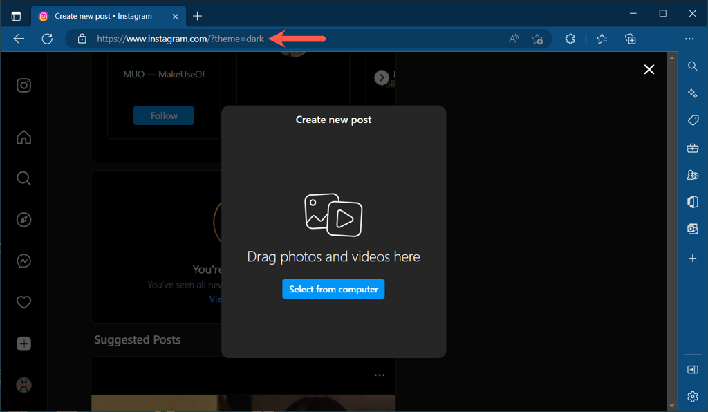 Rather than enter this URL for the dark theme on Instagram each time, consider creating a bookmark or saving the tab for fast access.