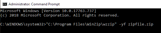 - In the Command Prompt window, change directories to where the corrupt ZIP archive is located. Type “C:\Program Files\WinZip\wzzip” -yf zipfile.zip into the field (double quotes included) and press Enter.