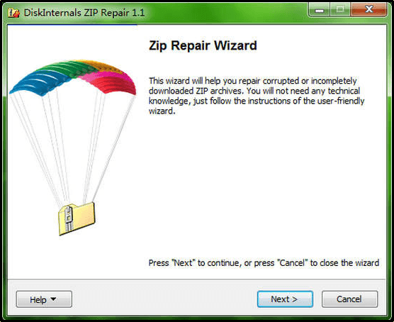 - From ZIP Repair’s home screen window, click the **Next **button to continue.
