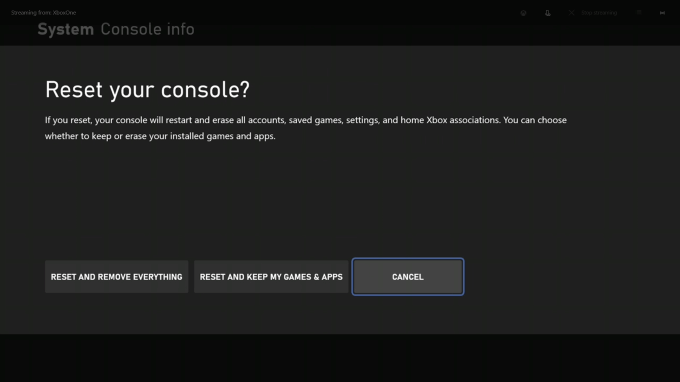 Be aware that the Xbox does not ask you to confirm your choice, nor request a password to go through with the reset. Once you select your choice, the system carries it out and you can’t stop it.