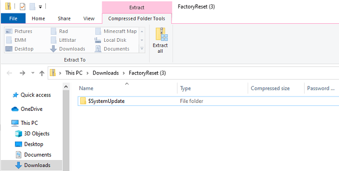 Unzip the folder. Inside you will find a file named $SystemUpdate. Copy that file onto the root directory of your flash drive, and then remove the drive from your PC.