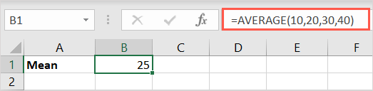=AVERAGE(10,20,30,40)