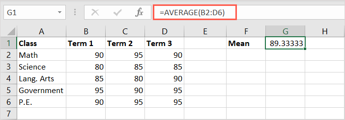 Let’s look at some examples for calculating mean with the AVERAGE function in Excel.