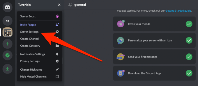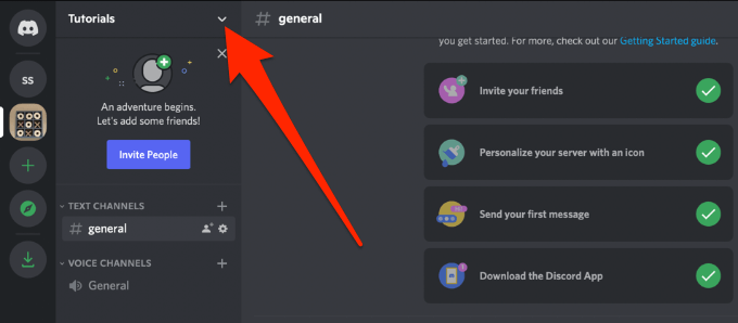 - Select the down arrow next to your Discord server’s name.
