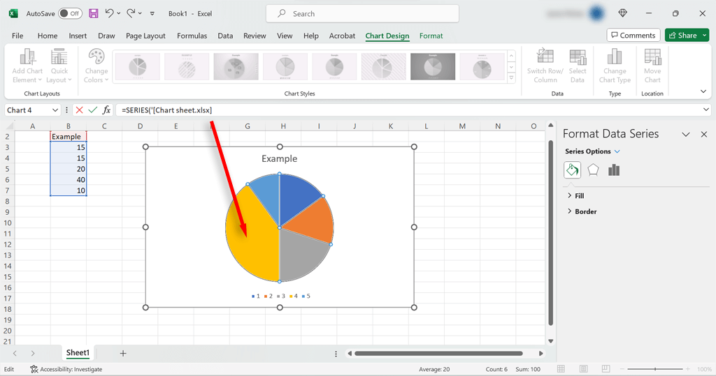 - Open the Excel sheet that contains the chart.