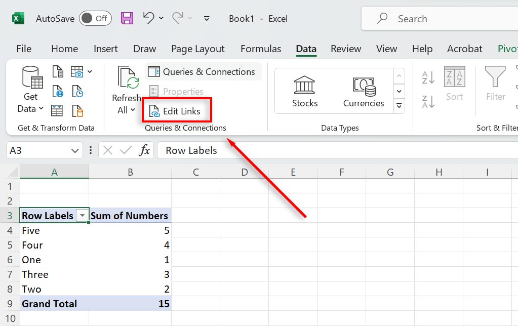 - Under the Queries & Connections group, select the Edit Links button. If the Edit Links option is gray, it means there are no links in your workbook.