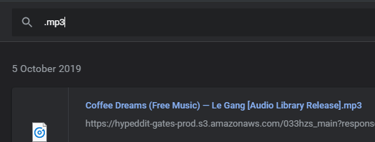 You can choose to search by file name or file type. For example, if you knew the file was an .mp3 file, searching .mp3 can return relevant results.