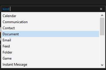 When you type** kind:** into the search box, you’ll also get a drop down box so that you can choose which type of file it is.