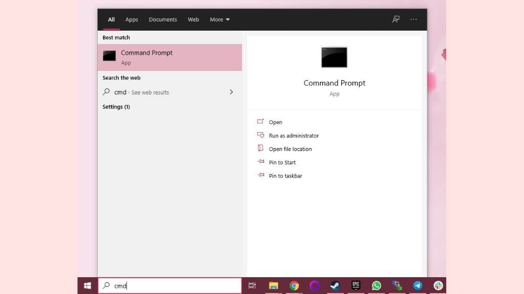 - * Open the Start Menu and type CMD. Then select Command Prompt.