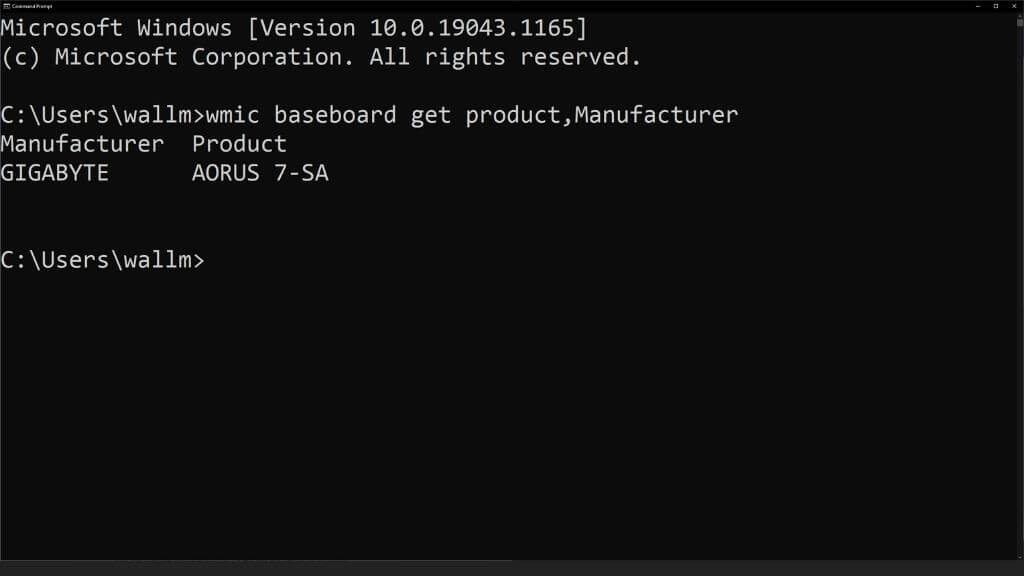 The output will then tell you the name of your motherboard. In this case, we’re using a laptop, so the motherboard’s name also happens to be the computer’s name. On a desktop system, this is usually not the case.