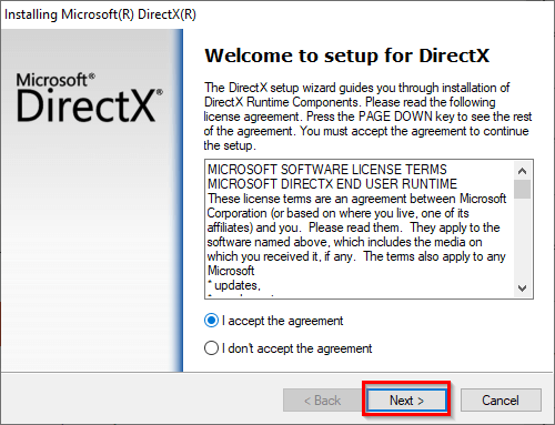 - Download the DirectX End-User Runtime Web Installer.