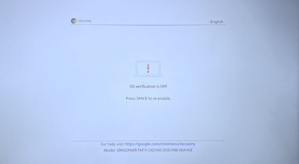 - Press Ctrl + D on the “OS verification is OFF” screen to boot your Chromebook.