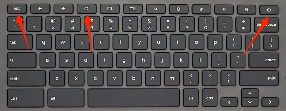 - Press and hold the Esc + Refresh + Power buttons simultaneously.