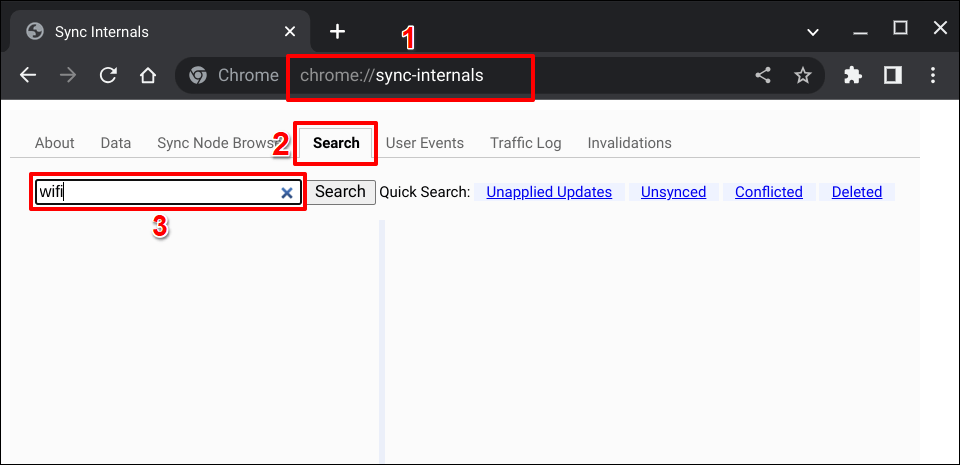 - * Type chrome://sync-internals in the address bar and press Enter.