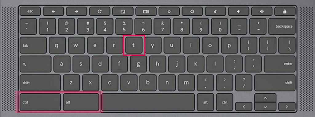 - Press Ctrl + Alt + T to launch the Chrome Shell command-line interface/terminal.