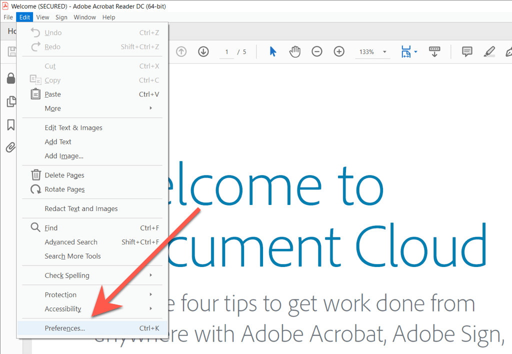 - * Open Adobe Acrobat and select Edit > Preferences (Windows) or Adobe Acrobat > Preferences (Mac) on the menu bar.